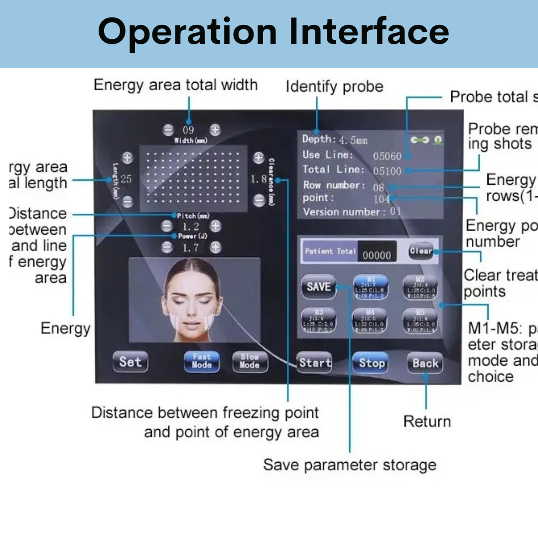 9D Face Lifting HIFU takes traditional HIFU to the next level. It features freely adjustable multi-dimensional parameters, including points distance, row distance, and energy of each point for custom treatment. You can control the precise depth of treatment with ultimate freedom and achieve the most professional-level results.