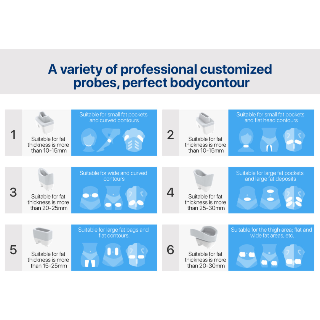 This machine includes 6 applicators, allowing for convenient slimming of multiple body areas such as the waist, thighs, chin, and more.
