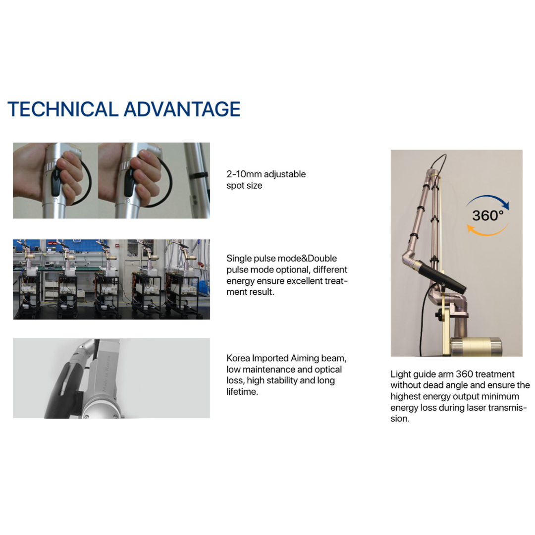 - Laser arm boasts precise reflection accuracy, minimal energy loss, a consistent light spot, and a reliably stable output.
