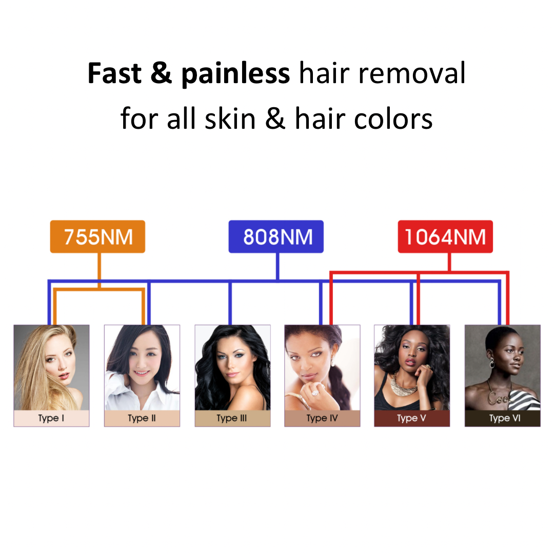 - SPEED 808nm - The gold standard in laser hair removal, offering high average power and deep penetration into the hair follicle